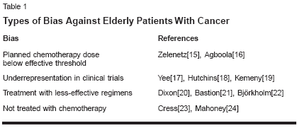 Hutchins LF, Unger JM, Crowley JJ, etal: Underrepresentation of patients 65 years ofage or older in cancer-treatment trials. N EnglJ Med 341:2061-2067, 1999.