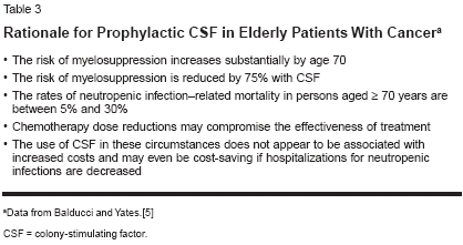 Lyman GH, Balducci L, Agboola Y: Useof colony-stimulating factors in the elderly cancerpatient. Oncology Spectrums 2:414-421,2001.
