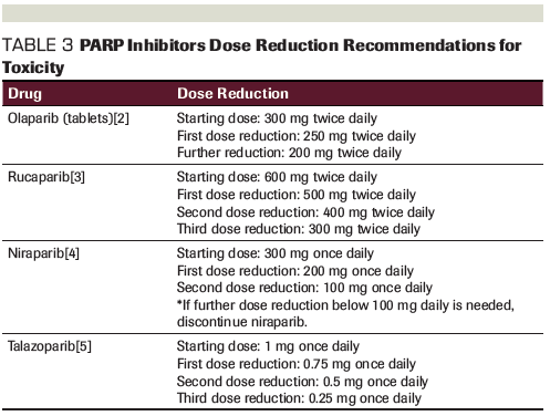 Table 3. PARP Inhibitors Dose Reduction Recommendations for Toxicity