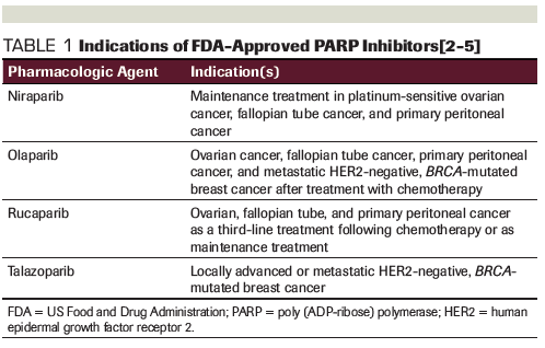 Table 1. Indications of FDA-Approved PARP Inhibitors