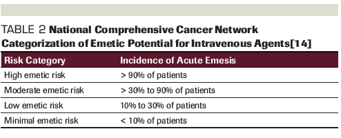 Table 2. National Comprehensive Cancer Network Categorization of Emetic Potential for Intravenous Agents