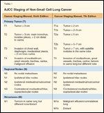 3. Groome PA, Bolejack V, Crowley JJ, et al: The IASLC Lung Cancer Staging Project: Validation of the proposals for revision of the T, N, and M descriptors and consequent stage groupings in the forthcoming (seventh) edition of the TNM classification of malignant tumours. J Thorac Oncol 2:694-705, 2007.