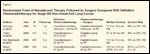 Although surgery offers the best chance for survival to patients with limited-station N2 disease, not all patients with N2 disease are appropriate candidates for surgical resection. Neoadjuvant systemic chemotherapy may play a role in the management of this disease to help facilitate local surgical control. Many patients may have technically resectable disease but may not be curatively resectable. That is, they will have microscopic or macroscopic disease following their surgical procedure, solidifying their chances for relapse. For these patients, consideration must be given to concurrent chemoradiation for definitive treatment (Table 5). Although phase II studies did suggest a benefit to neoadjuvant concurrent chemoradiation therapy followed by surgery,[30-32] randomized trials found no additional benefit to surgery following bimodality induction therapy.[33-37]