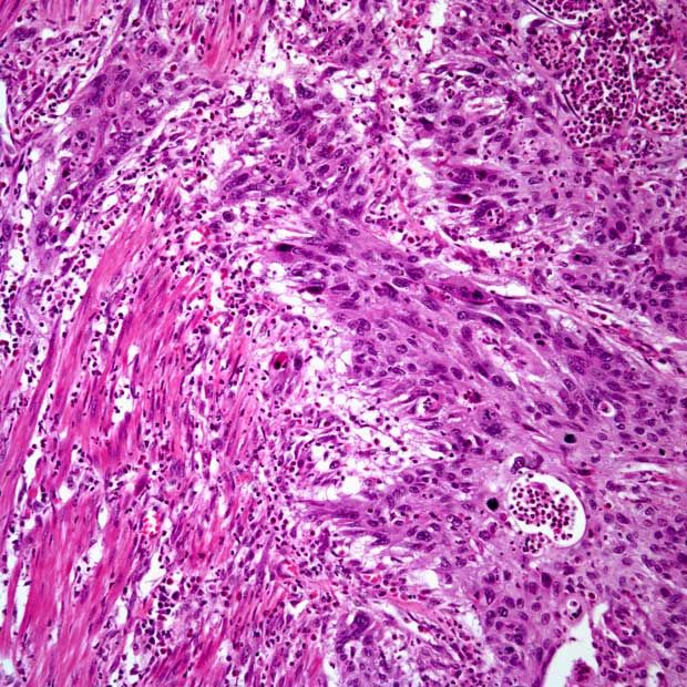 Infiltrating high-grade urothelial transitional cell carcinoma of the bladder; source: Cesar A. Moran, MD