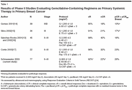 16. Sánchez-Rovira P, Jaén A, Duenas R, et al: Neoadjuvant gemcitabine therapy for breast cancer. Clin Breast Cancer 3(suppl 1):S39-S44, 2002.
