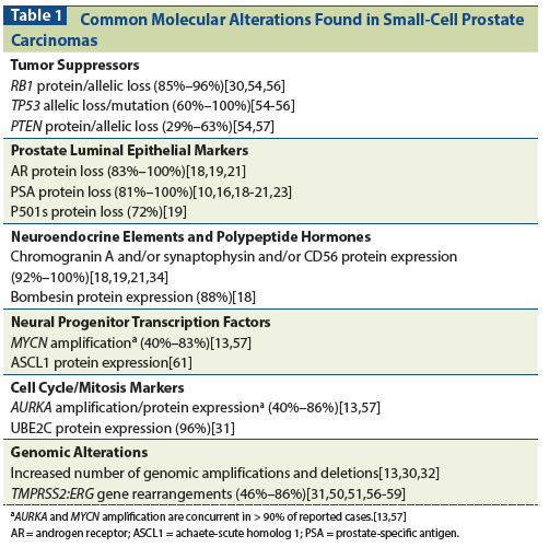 Table 1: Common Molecular Alterations Found in Small-Cell Prostate Carcinomas