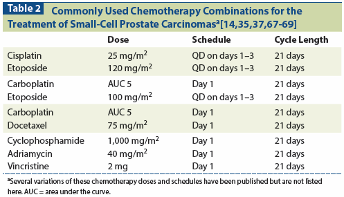Table 2: Commonly Used Chemotherapy Combinations for the Treatment of Small-Cell Prostate Carcinomasa[14,35,37,67-69]