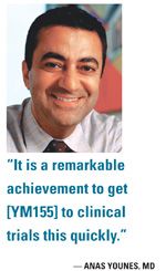 “Despite having a good mechanism of action, there are a lot of unanswered questions about this drug. Nevertheless, it is a remarkable achievement to get this drug to clinical trials this quickly,” Dr. Younes said. “A 30% response rate would be considered exciting single-agent activity for new drugs in DLBCL,” he said, and he predicted that the best use of YM155 and other novel agents for DLBCL will be in combination with other drugs.
