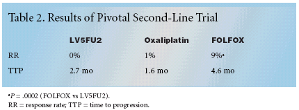 "Unless we've been living in a crypt,we all know about the N9741 datashowing that FOLFOX (fluorouracil[5-FU], leucovorin, oxaliplatin) is agood candidate for first-line use," Dr.Haller stated (see Table 1). FOLFOXwas similarly effective for second-lineuse (see Table 2).Researchers trying to determine theoptimal sequence for deploying thevarious 5-FU/irinotecan and 5-FU/oxaliplatin regimens have thus far notidentified any significant difference inthe sequences tested. "There really isno difference between FOLFOX-6 andFOLFIRI (5-FU/leucovorin/irinotecan)in the meaningful endpoint ofresponse," Dr. Haller added. "Themain differences are in toxicity."Molecular profiling studies areseeking prognostic markers to identifypatients with good survival who donot need adjuvant chemotherapy andpredictive markers to identify patientswho will benefit from therapy. Thebiologic markers of prognosis inCRC most likely to enter trials arethymidylate synthase levels, microsatelliteinstability, and allelic loss in chromosome18."Looking at our progress in firstlinetreatment of metastatic CRC, wefind that response rate and survivalhave both increased," Dr. Hallerrevealed.In adjuvant treatment, the MOSAICtrial comparing infusional 5-FU/leucovorin with or without oxaliplatin(FOLFOX-4) showed thatFOLFOX produced improvements in3-year disease-free survival (77.8% vs72.9%, P < . 01). This difference isboth statistically significant and clinicallyrelevant, according to Dr. Haller.Other trials have shown that an improvementin 3-year survival translatesinto a 5-year-survival advantage.The question of how to identifysubgroups of patients with differentpotentials for benefit or toxicity remainsan important one. A recentpooled analysis of data from adjuvantrectal cancer trials showed that T andN stages have independent prognosticsignificance. Single risk factors of N+disease confined to the wall or N- diseaseextending beyond the wall withoutadherence or invasion are bothassociated with survival and diseasecontrol. This analysis concluded thatthe new T and N stages best reflectprognosis and should be used topresent information to patients.Gastric CancerThe direction for treatment of patientswith gastric cancer is less clear.The V 325 phase III trial attempted tolearn whether adding docetaxel (Taxotere)to the standard regimen of cisplatinand 5-FU was beneficial. Interimanalysis suggests significantimprovements in response rate, progression-free survival, and overall survivalfrom the three-drug regimen."This is a very active combinationbut it is not the easiest to give. We havehad a lot of discussion about the factthat a quarter of the patients, many ofwhom were responding, stopped therapybecause they saw no point in continuing,"Dr. Haller said.With regard to adjuvant chemotherapy,interpreting results from previousindividual trials is complicatedby the fact that many used suboptimalchemotherapy regimens. Meta-analysesare consistent with possible survivalbenefits. "The de facto standard, aswith rectal cancer, has become chemoradiation,"Dr. Haller stated. "Thequestion remains: Does every one ofthese patients need radiation therapy,or are some going to benefit simplyfrom better surgery and adjuvantchemotherapy?"The MAGIC trial of neoadjuvantepirubicin (Ellence), cisplatin, 5-FU(ECF), surgery, and postoperative ECFvs surgery alone showed a small survivaladvantage for the combinationregimen. In a slightly larger trial, withbetter patient selection, Dr. Haller believesthat this would have been a definitivelypositive result.Pancreatic CancerGemcitabine (Gemzar) combinationshave attracted much attention inthe treatment of patients with pancreaticcancer. "All of these have hadpromising phase II data and not-so-promising phase III data," Dr. Hallersaid. "One of the issues is that we maynot know how to give gemcitabinemost effectively. It is a pro-drug andmay not reach its full potential whengiven over 30 minutes rather than prolongedinfusion."Data on the irinotecan/gemcitabinecombination presented at theAmerican Society of Clinical Oncology(ASCO) 2003 meeting suggestedthat although there was a better responserate with the combination thanwith gemcitabine alone, it did nottranslate into a survival advantage. Aphase III trial of gemcitabine/cisplatinwas similarly disappointing, Dr. Hallerconcluded.