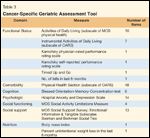 Patient selection may be further improved by identifying those older patients vulnerable to toxicity and functional decline from chemotherapy. Geriatric assessment has been shown to predict for tolerance and survival in other cancers.[50-52] The Cancer Specific Geriatric Assessment developed by Hurria et al, a brief tool developed specifically for older cancer patients, is currently undergoing validation in large clinical trials (see Table 3).[53-55] It includes independently validated measures of functional status, comorbid medical conditions, cognition, mental health, social functioning and support, medication usage, and nutritional status.