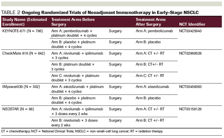 Table 2. Ongoing Randomized Trials of Neoadjuvant Immunotherapy in Early-Stage NSCLC