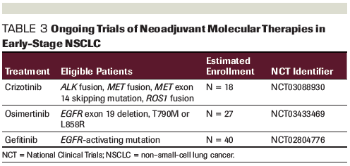 Table 3. Ongoing Trials of Neoadjuvant Molecular Therapies in Early-Stage NSCLC