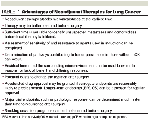 Table 1. Advantages of Neoadjuvant Therapies for Lung Cancer