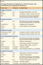 Average Prevalence of Mutations in Thyroid Cancer and Potential Drugs Targeting the Mutations