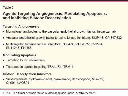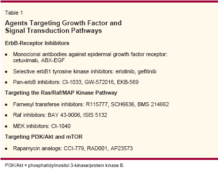 Traditional therapies for breast cancer have generally relied uponthe targeting of rapidly proliferating cells by inhibiting DNA replicationor cell division. Although this strategy has been effective, its innate lackof selectivity for tumor cells has resulted in diminishing returns, approachingthe limits of acceptable toxicity. A growing understanding ofthe molecular events that mediate tumor growth and metastases has ledto the development of rationally designed targeted therapeutics thatoffer the dual hope of maximizing efficacy and minimizing toxicity tonormal tissue. Promising strategies include the inhibition of growthfactor receptor and signal transduction pathways, prevention of tumorangiogenesis, modulation of apoptosis, and inhibition of histone deacetylation.This article reviews the development of several novel targetedtherapies that may be efficacious in the treatment of patients with breastcancer and highlights the challenges and opportunities associated withthese agents.