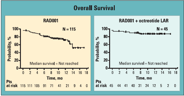 The progression-free and overall survival data support the efficacy of RAD001,” said lead author James Yao, MD, of M.D. Anderson Cancer Center in Houston. Th e symposium was jointly sponsored by ASCO, the American Society for Radiation Oncology, the Society for Surgical Oncology, and the American Gastroenterological Association.