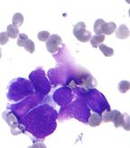 Micrograph of small-cell carcinoma of the lung; FNA specimen; field stain; source: Nephron, Wikimedia Commons
