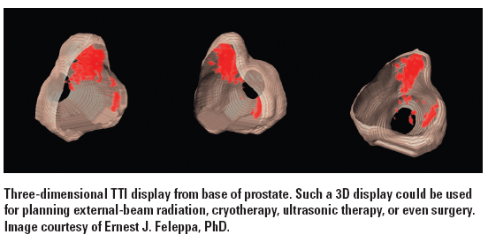 treatment of prostate cancer, according to Ernest J. Feleppa, PhD, research director of the Frederic L. Lizzi Center for Biomedical Engineering at the Riverside Research Institute in New York. “The method seems to be capable of distinguishing cancerous from noncancerous tissue in the prostate,” Dr. Feleppa said. “This would be a major breakthrough for biopsy guidance and treatment planning and delivery.”