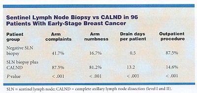 The early results of the H. Lee Moffitt study are comparable to the results of a study reported by Giuliano et al in 2000, she said. That study also described no axillary recurrences. [See Giuliano et al: J Clin Oncol 18:2553-2559, 2000.]