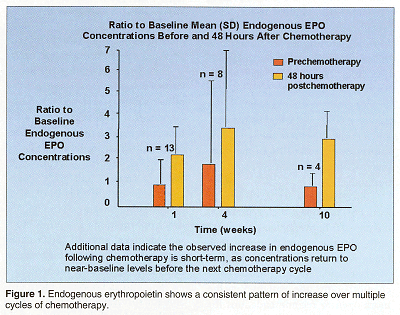 Another important issue involves the metabolism of endogenous and exogenous EPO. For example, the observed increase in endogenous EPO following chemotherapy is short-term and levels return to baseline before the next chemotherapy cycle (see Figure 1).