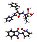 Ball-and-stick models of bortezomib (top) and thalidomide (bottom)