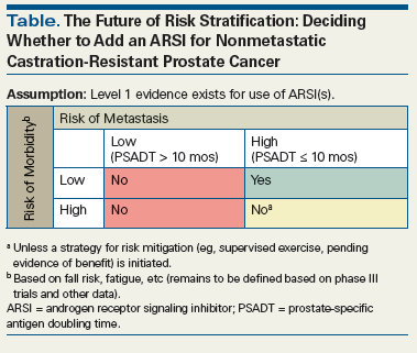 Table. The Future of Risk Stratification: Deciding Whether to Add an ARSI for Nonmetastatic Castration-Resistant Prostate Cancer
