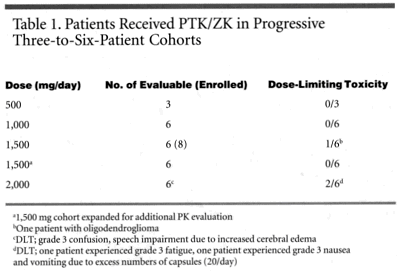 The phase I study has found no hematologic toxicity from PTK/ZK. Most of the toxicity seen at high doses has been fatigue, headache, and ataxia, according to Dr. Yung, who calls the regimen well tolerated.