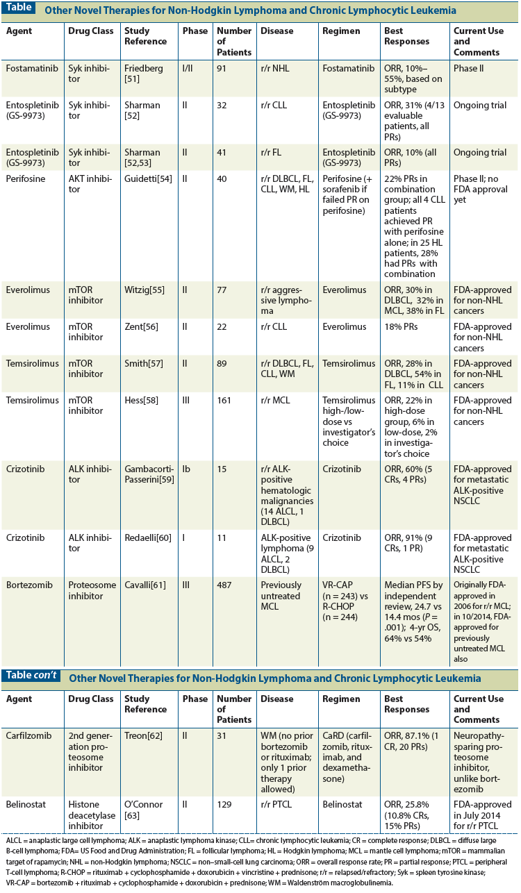 Table: Other Novel Therapies for Non-Hodgkin Lymphoma and Chronic Lymphocytic Leukemia