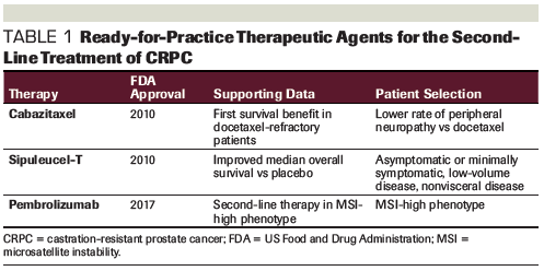 Table 1. Ready-for-Practice Therapeutic Agents for the Second-Line Treatment of CRPC
