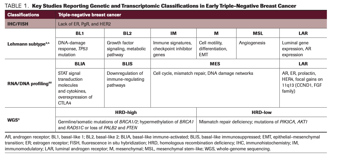 TABLE 1. Key Studies Reporting Genetic and Transcriptomic Classifications in Early Triple-Negative Breast Cancer