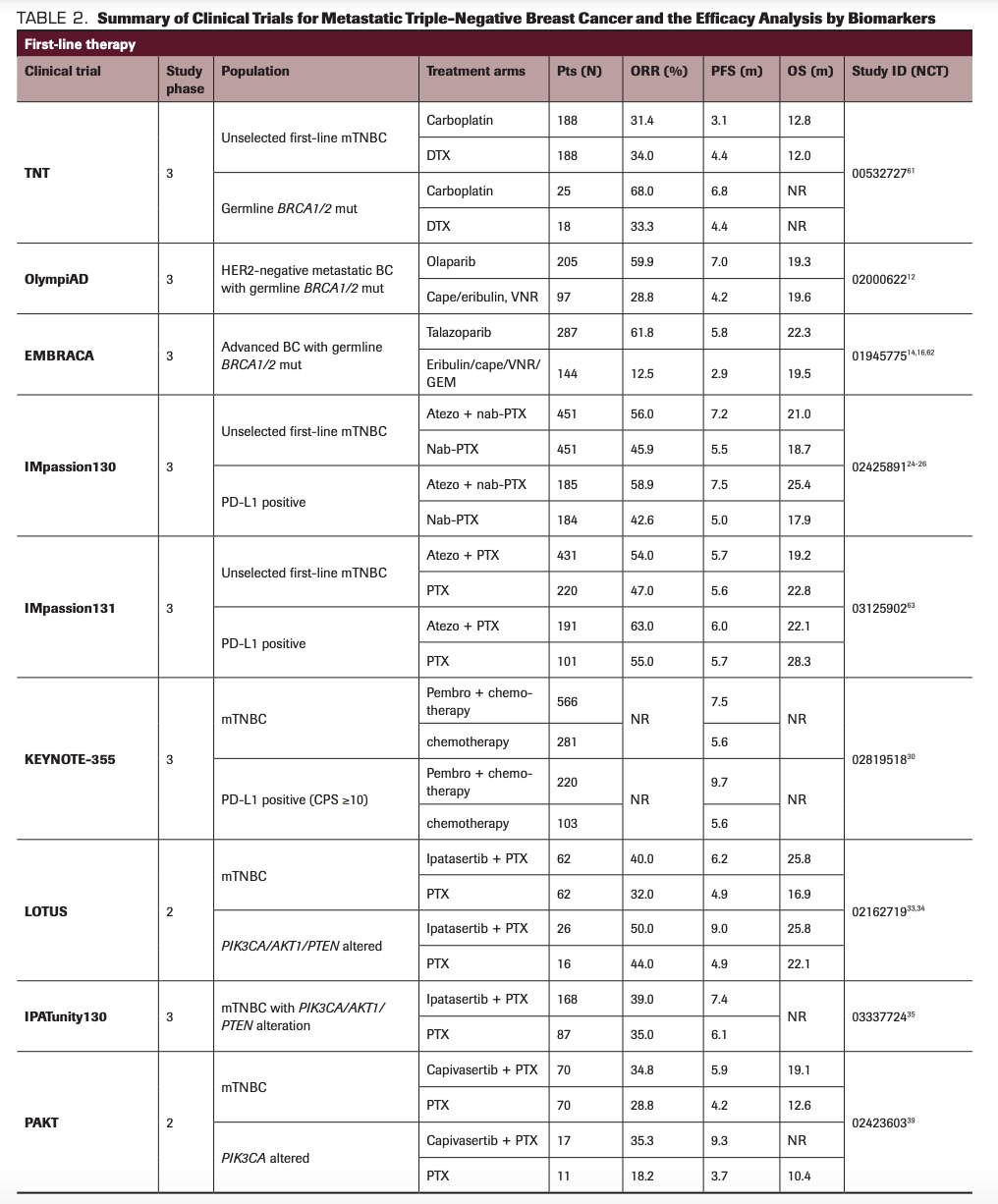 TABLE 2. Summary of Clinical Trials for Metastatic Triple-Negative Breast Cancer and the Efficacy Analysis by Biomarkers