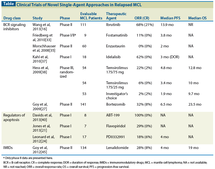 Table: Clinical Trials of Novel Single-Agent Approaches in Relapsed MCL