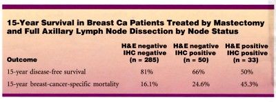 ORLANDO-Data from a massive pathologic reanalysis of breast cancer patients with apparently negative lymph nodes show that women with occult micrometastases have shorter disease-free survival and are more likely to die from breast cancer than are women whose nodes are negative on immunohistochemistry.