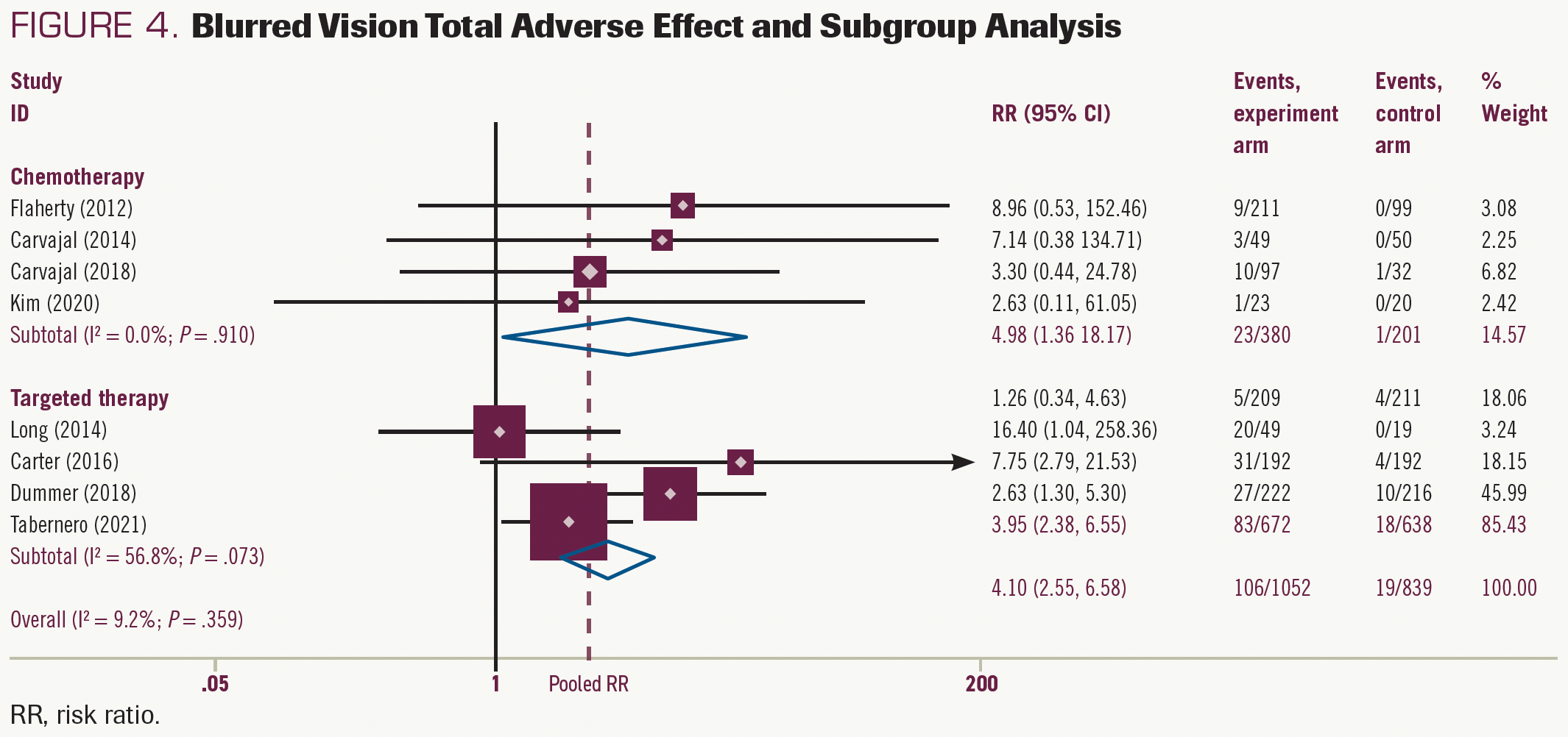 FIGURE 4. Blurred Vision Total Adverse Effect and Subgroup Analysis