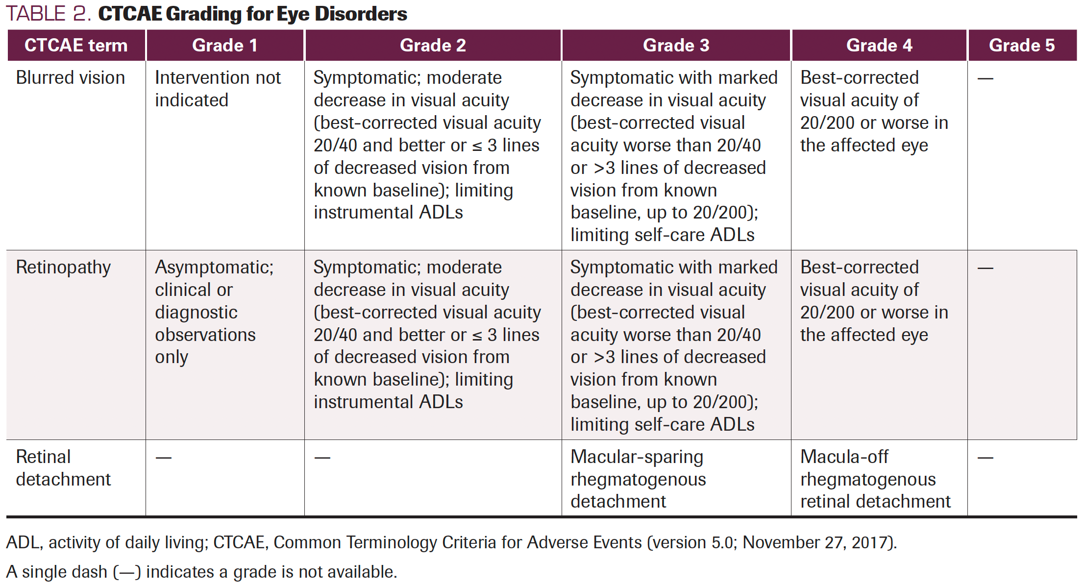 TABLE 2. CTCAE Grading for Eye Disorders