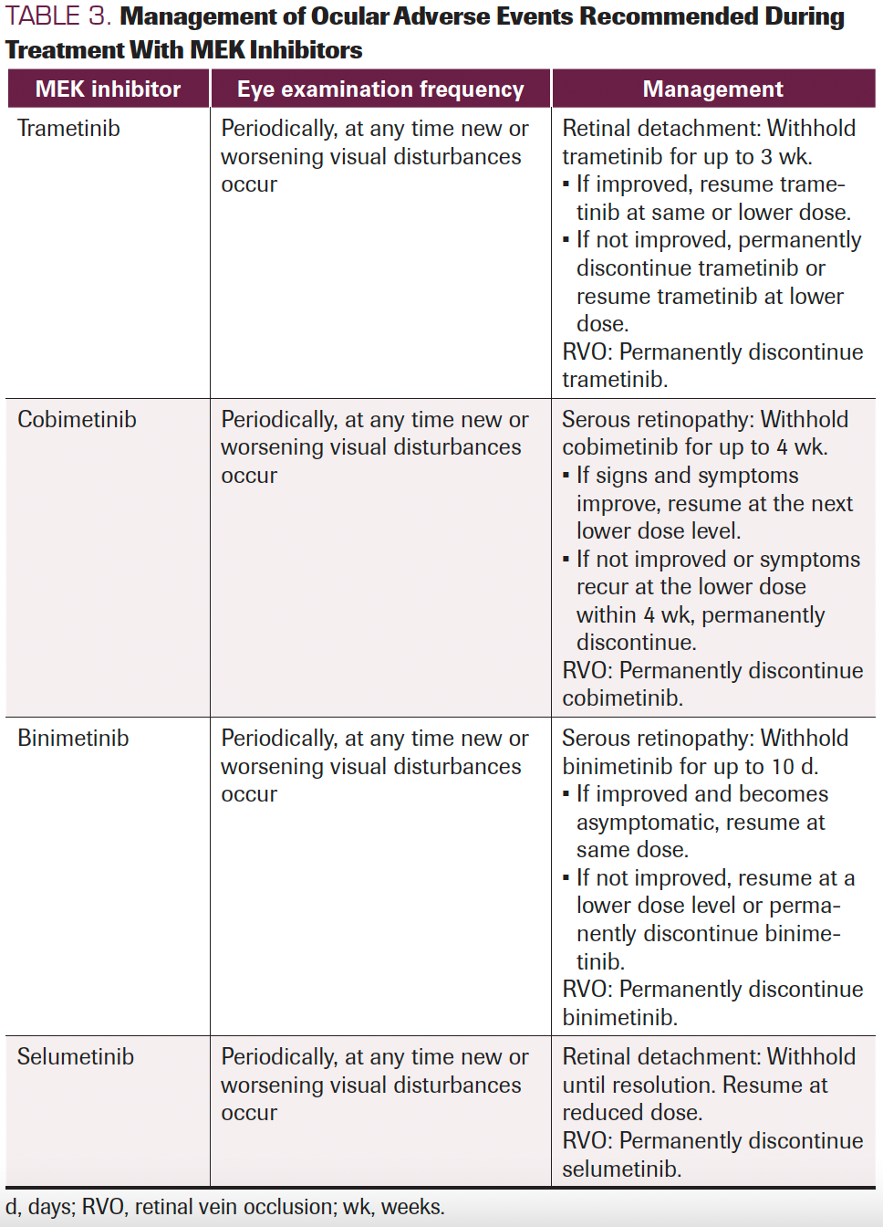 TABLE 3. Management of Ocular Adverse Events Recommended During
