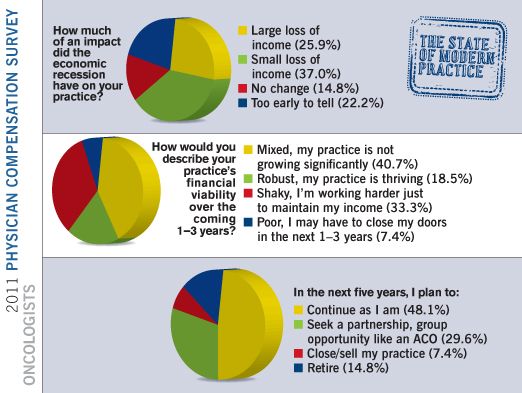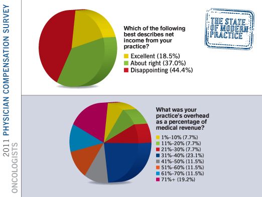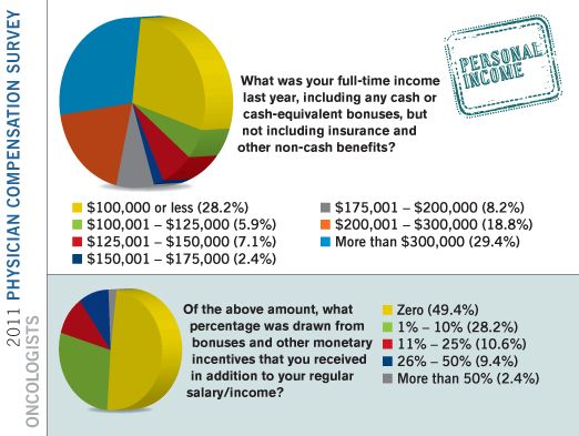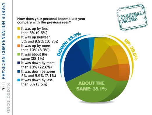 Twenty-two percent of oncologists report that their personal income dropped more than 10 percent in 2011.