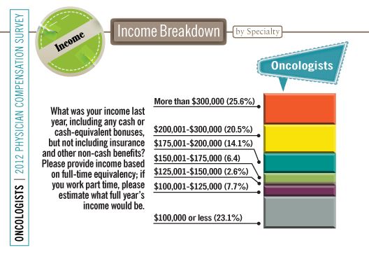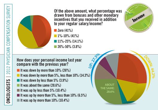 Nearly half of all oncologists surveyed (44.2%) reported that their income dropped in 2012.