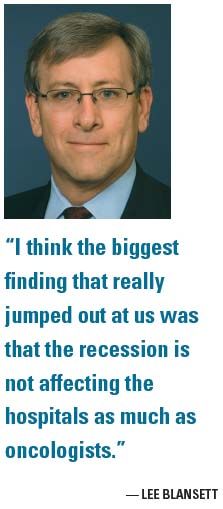 "I think the biggest finding that really jumped out at us was that the recession is not affecting the hospitals as much as oncologists. They did not get impacted like the community oncologists," said Lee Blansett, senior vice president of Oncology Market Access for Kantar Health, based in Foster City, Calif. "This is a big trend change here. There was nothing subtle about it."