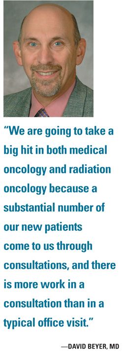 “We are going to take a big hit in both medical oncology and radiation oncology because a substantial number of our new patients come to us through consultations and there is more work in a consultation than in a typical office visit,” Dr. Beyer said.