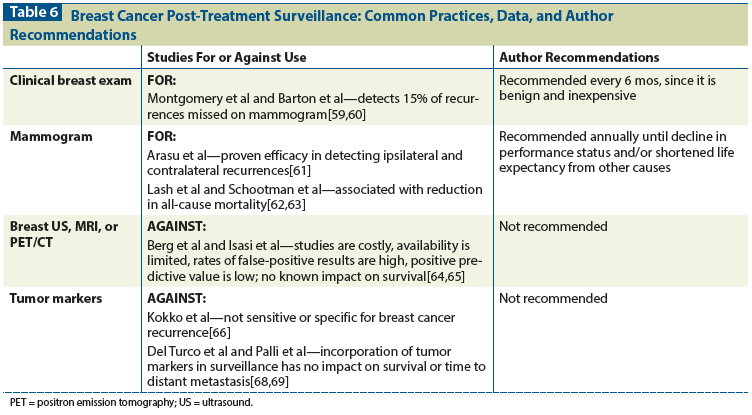 Table 6: Breast Cancer Post-Treatment Surveillance: Common Practices, Data, and Author Recommendations
