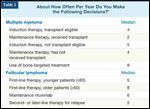 Responses provided during this survey indicate that these physicians are regularly engaging in treatment decision-making related to multiple myeloma and follicular lymphoma (Table 1).