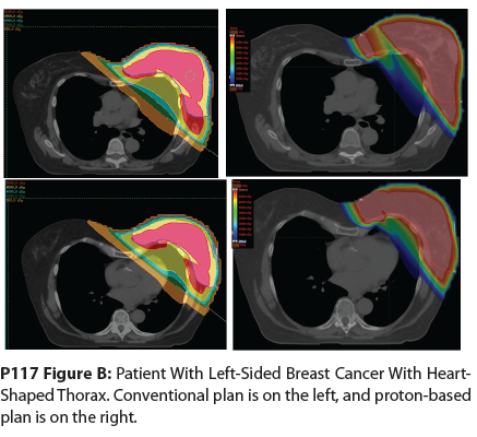 Conventional radiotherapy (RT) with proton-based RT in a series of patients with right- or left-sided breast cancer and anatomical variations resulting in technically challenging radiation plans are compared.