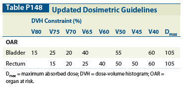 Methods: An internal committee of radiation oncologists, physicists, and dosimetrists reviewed our site’s existing treatment guidelines and updated them based on current Radiation Therapy Oncology Group (RTOG) trials and scientific publications (see Table).