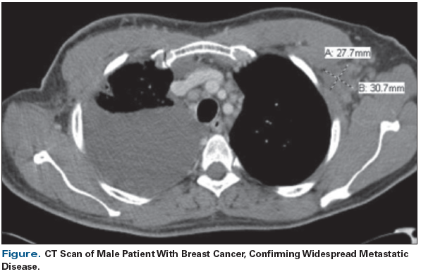 Figure. CT Scan of Male Patient With Breast Cancer, Confirming Widespread Metastatic Disease.