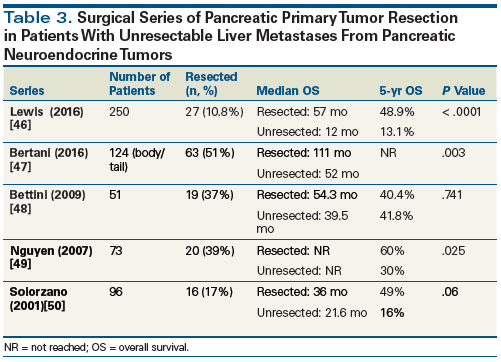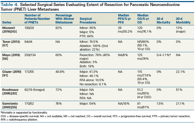 Table 4. Selected Surgical Series Evaluating Extent of Resection for Pancreatic Neuroendocrine Tumor (PNET) Liver Metastases