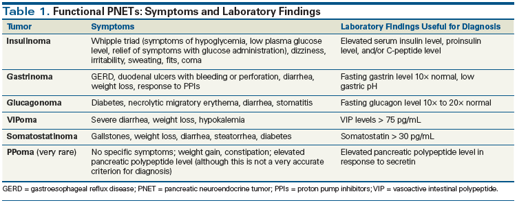 Table 1. Functional PNETs: Symptoms and Laboratory Findings