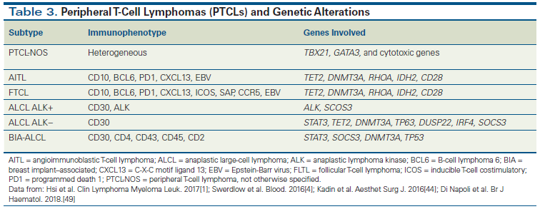 Table 3. Peripheral T-Cell Lymphomas (PTCLs) and Genetic Alterations