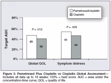 Gralla RJ, Hollen PJ, Liepa AM, et al:Improving quality of life in patients with malignantpleural mesothelioma: Results of therandomized pemetrexed + cisplatin vs. cisplatintrial using the LCSS-meso instrument (abstract2496). Proc Am Soc Clin Oncol 22:621, 2003.