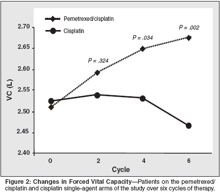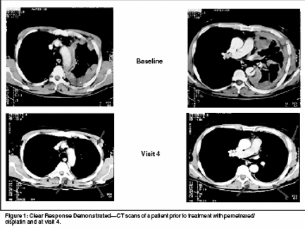 Paoletti P, Pistolesi M, Rusthoven JJ, etal: Correlation of pulmonary function tests withbest tumor response status: Results from thephase III study of pemetrexed+ cisplatin vs.cisplatin in malignant pleural mesothelioma(abstract 2651). Proc Am Soc Clin Oncol22:659, 2003.